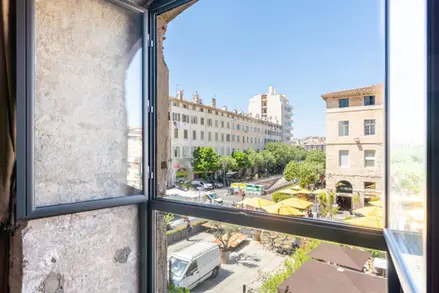 Le grand séjour offre un espace de travail optimal, avec une très bonne connexion Wifi.L'appartement donne sur une grande place en plein cœur du Vieux Port et des innombrables bars, pubs et restaurants de Marseille ! Vous pourrez ainsi profiter pleinement de la vie nocturne animée de la ville.